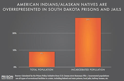 Native Americans are disproportionately affected by mass incarceration. See how the Native population percentage in South Dakota and Arizona (states with particularly high Native populations) compares to how many make up prisons and jails.Read more about it here.