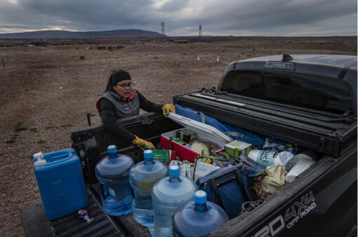 From the Los Angeles Times: "Navajo member Shanna Yazzie unpacks water and other supplies on her reservation in Cameron, Ariz., during the early part of the pandemic in March 2020.(Gina Ferazzi / Los Angeles Times)" (x)